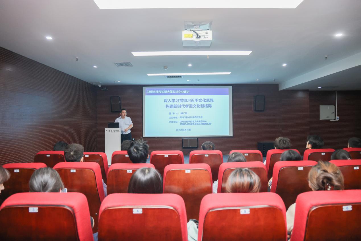 活动特邀郑州财经学院孝文化传承中心负责人、副研究馆员杨义民作宣讲。他从三个方面对孝道文化进行了深入阐释:一是新时代视角,深入解读孝道文化的当代价值与社会意义;二是创新性实践,系统分析孝文化传承的现代路径与方法;三是企业新担当,重点探讨企业在弘扬孝道文化中的责任与实践。与会人员就传统文化与现代企业管理等话题进行了深入交流。中心负责人表示,将以本次活动为新起点,重点推进三项工作:一是打造“孝文化+”系列品牌活动;二是开发数字化传播新载体;三是构建校企合作畅销机制。持续为郑州市文化建设和社科普及工作贡献智慧力量。