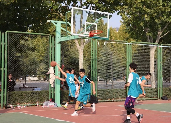 此次篮球赛我院对阵的是现代教育学院。比赛还没开始,现场就充满了紧张而又激动的气氛。随着裁判的一声哨响,两队球员顺势而动,我院的李灿率先赢得两分,随后现代教育学院的郝一阳也不甘示弱,场面十分紧张刺激。